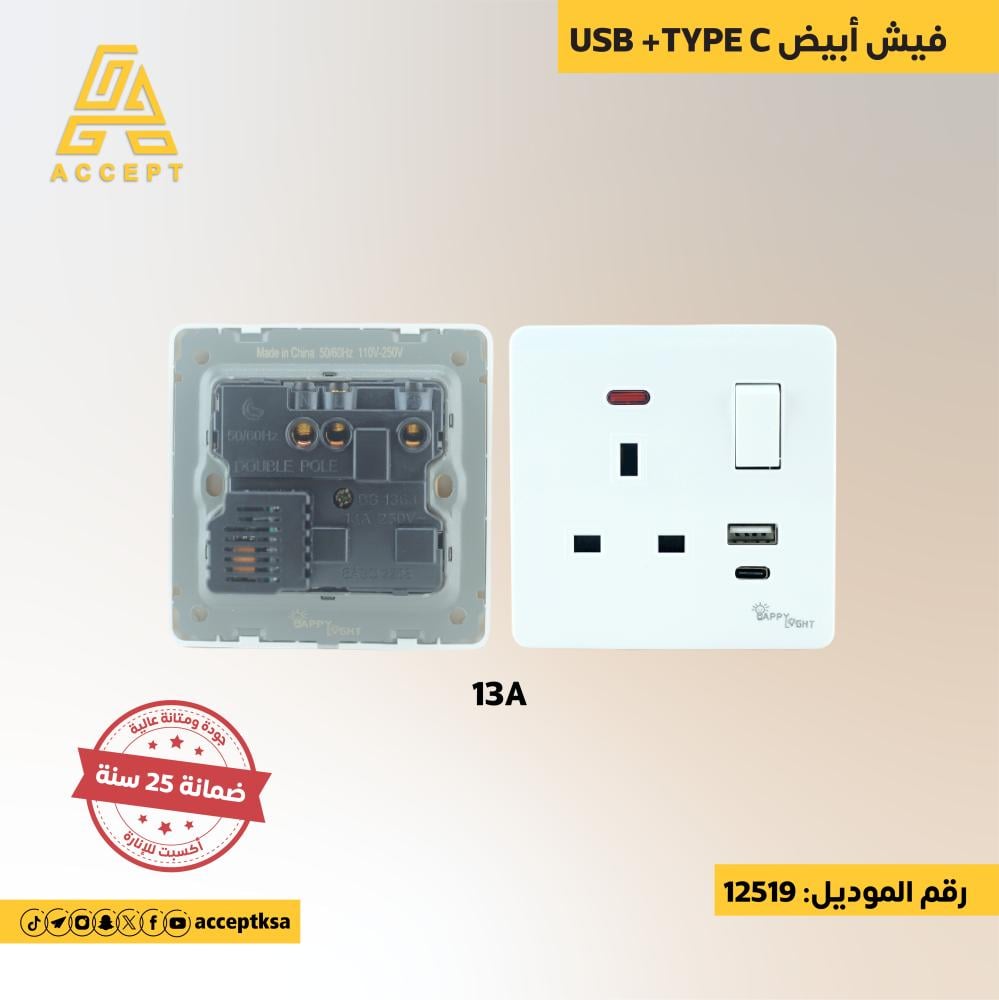 فيش USB (13 أمبير) باللون الأبيض يتمتع بآلية تشغيل سلسة، ويضمن أداءً موثوقًا على المدى الطويل، مع ضمان يصل إلى 25 عامًا، ما يعزز الثقة في جودته العالية.