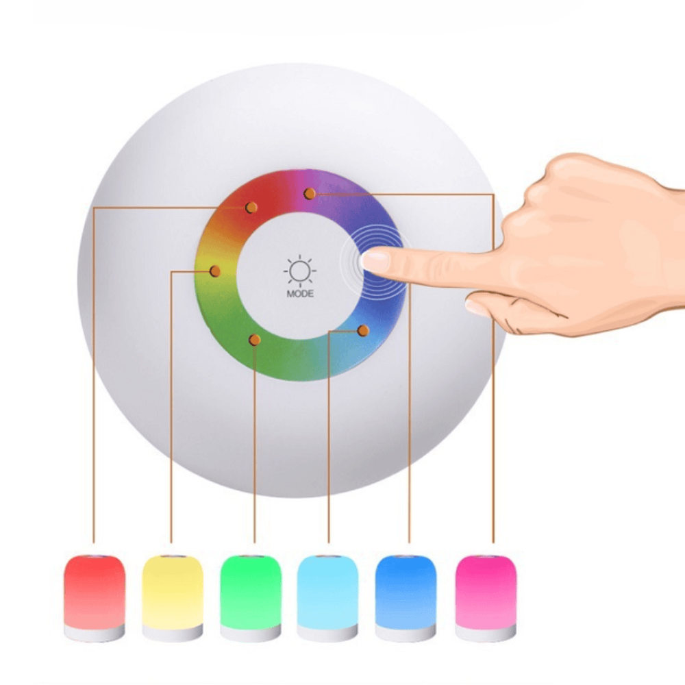 مصباح طاولة LED صغير الحجم وعصري، يعمل بالشحن عبر USB ومزود بتحكم باللمس، يوفر 5 أنماط إضاءة مختلفة تشمل ألوان RGB المتغيرة، مثالي لإضفاء أجواء متنوعة ومريحة في أي مكان.