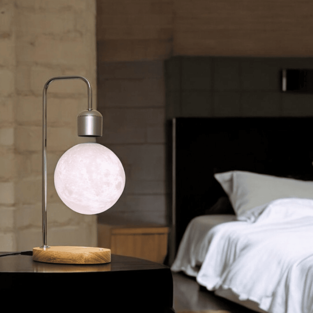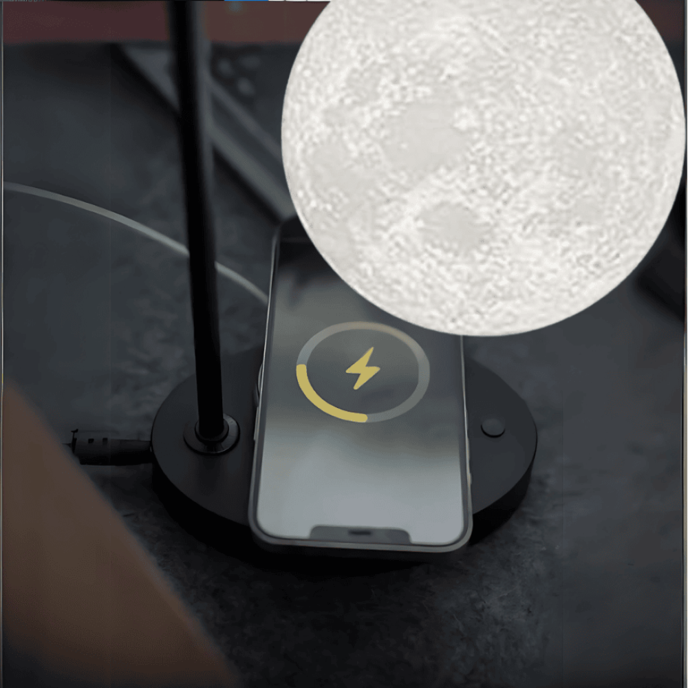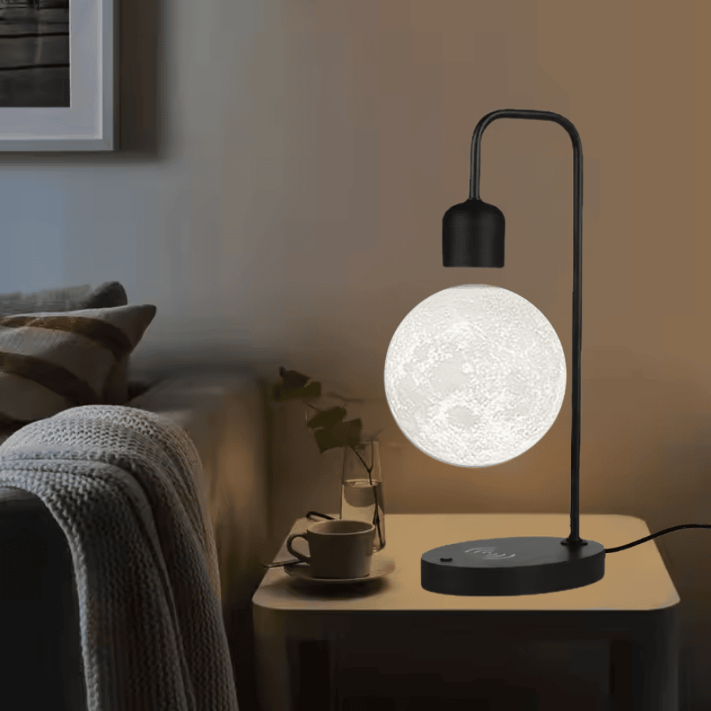 أضف لمسة عصرية متعددة الوظائف إلى مساحتك مع هذه الأبجورة الفريدة على شكل قمر عائم مغناطيسيًا. تتميز بقاعدة سوداء أنيقة تعمل باللمس للتحكم في الإضاءة البيضاء الهادئة، بالإضافة إلى ميزة الشحن اللاسلكي المدمجة لشحن هواتفك الذكية والأجهزة المتوافقة بسهولة. تصميم مبتكر يجمع بين سحر الإضاءة والراحة التكنولوجية.
