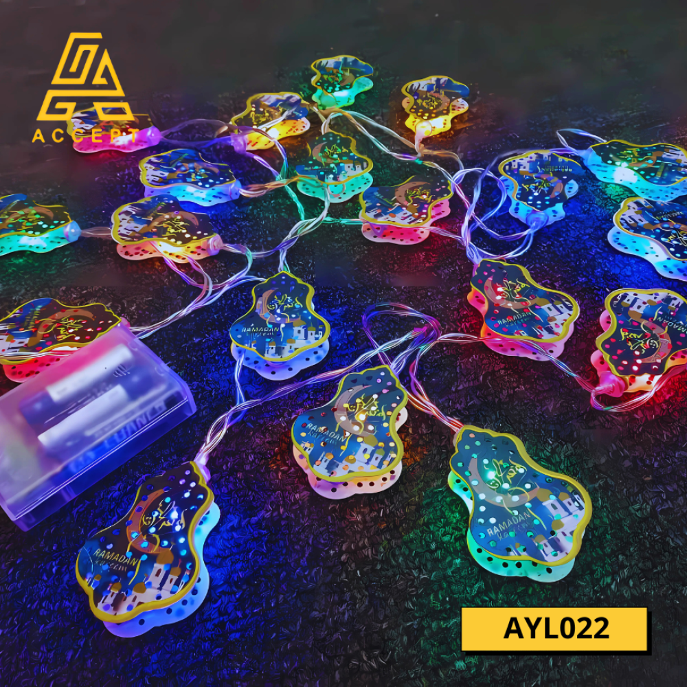 زينة رمضان LED على شكل فوانيس مضيئة متعددة الألوان بطول 3 متر تعمل على بطارية 1.5V