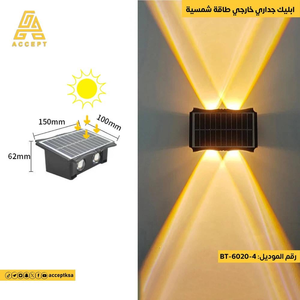 هل تبحث عن إضاءة خارجية عملية وأنيقة؟ إبليك الحائط الشمسي هو الحل الأمثل! تصميمه العصري واللون الأصفر الدافئ يضفيان لمسة جمالية على أي مكان. يعمل تلقائيًا مع حلول الظلام.