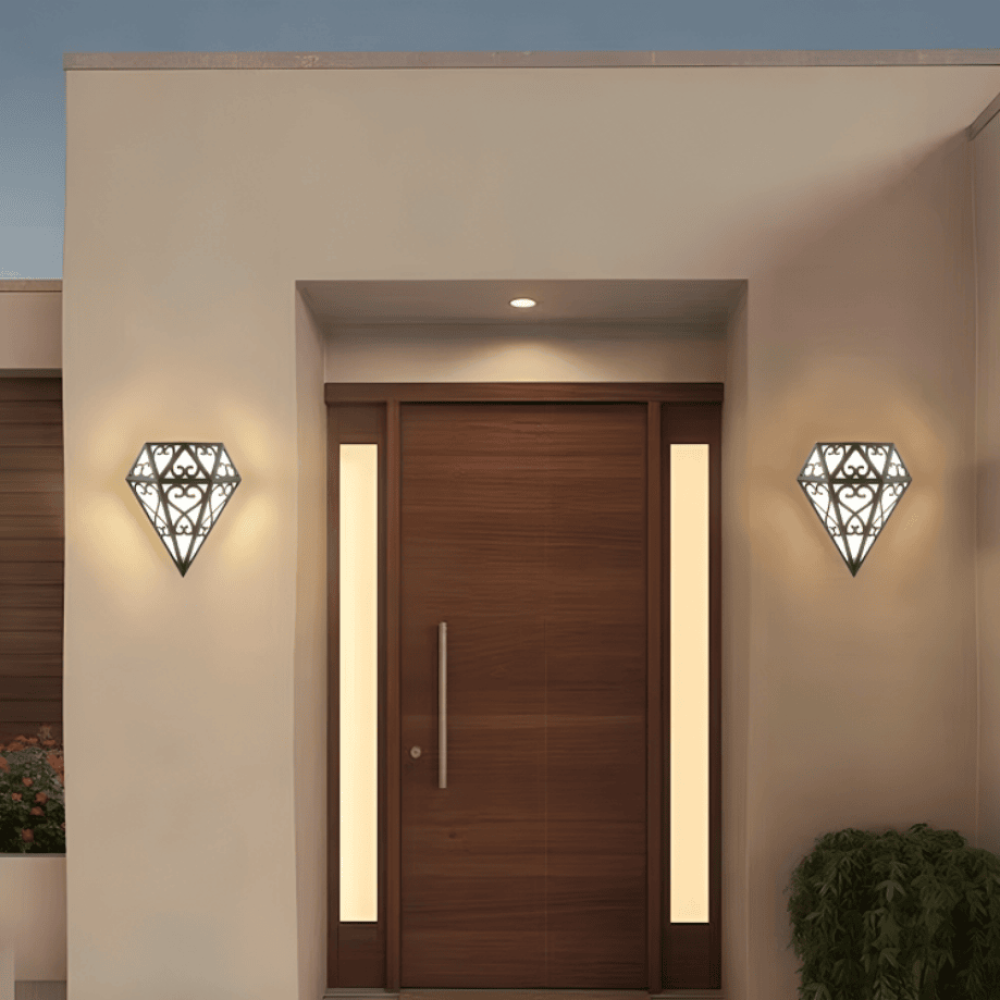 أضف لمسة من الفخامة إلى واجهة منزلك مع إبليكنا الجداري الخارجي بتصميم الألماسة الأنيق. هذا الإبليك الجذاب مصنوع من مواد عالية الجودة ومقاوم للعوامل الجوية، مما يضمن لك متانة طويلة الأمد. يتميز بتصميمه الفريد على شكل ماسة مع تفاصيل معدنية أنيقة، بالإضافة إلى إضاءة صفراء تمنح منزلك إطلالة جذابة في الليل.