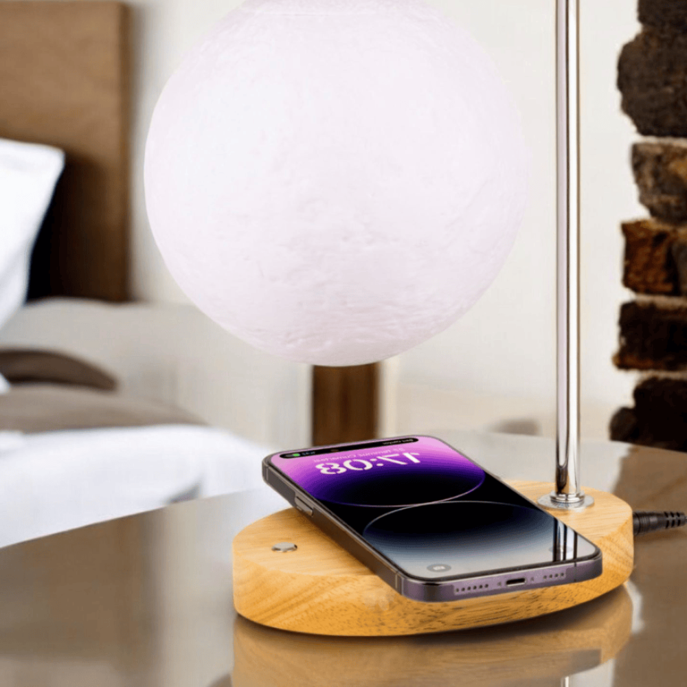 أضف لمسة عصرية متعددة الوظائف إلى مساحتك مع هذه الأبجورة الفريدة على شكل قمر عائم مغناطيسيًا. تتميز بقاعدة فضية أنيقة تعمل باللمس للتحكم في الإضاءة البيضاء الهادئة، بالإضافة إلى ميزة الشحن اللاسلكي المدمجة لشحن هواتفك الذكية والأجهزة المتوافقة بسهولة. تصميم مبتكر يجمع بين سحر الإضاءة والراحة التكنولوجية.